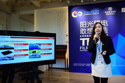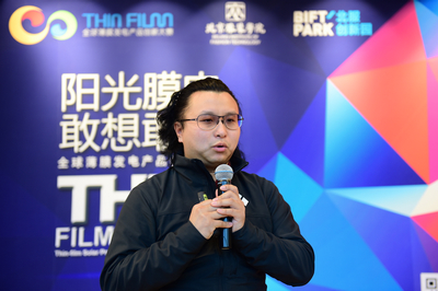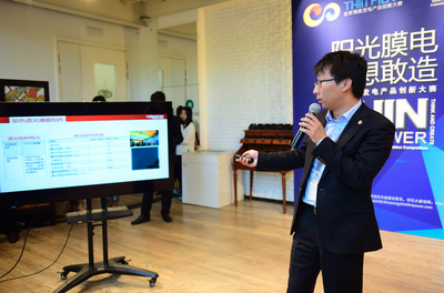 最后,来自汉能的专家和工程师“全球薄膜发电产品创新大赛”产品技术专员王宏来讲解了“太阳能薄膜发电技术与应用”相关知识,讲解了太阳能薄膜发电技术柔性可弯曲、质量轻、弱光性好、颜色可调、形状可塑的优势及其应用领域。