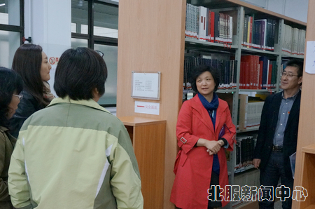 汇报结束后,艾丽副书记一行到图书馆各阅览室及自习室等处进行实地考察,了解了图书馆室内外环境、设施改造及馆藏资源建设等情况。