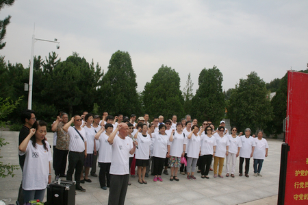 为庆祝中国共产党成立96周年和迎接十九大的胜利召开,进一步深入开展和巩固“两学一做”学习教育成果,使“两学一做”学习教育常态化制度化,6月21日上午,离退休工作处组织离退休11个党支部的部分党员代表赴平北抗日烈士纪念园开展“不忘初心 继续前行”主题党日活动。离退休各支部书记、党员代表60余人参加了此次活动。