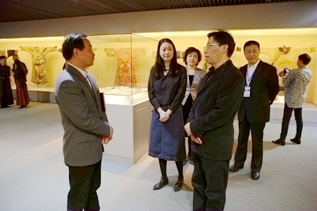 展厅参观结束后,专家组山东艺术学院设计学院院长荆雷教授走访了民族服饰博物馆纺织品文物修复室,调查了修复室的基本情况和对在校生专业培养方面所做的工作。
