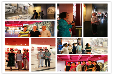 之后,大家走进纪念馆,在各主题展览区域认真观看,一个个模拟场景、一幅幅真实图片、一段段发黄文字让大家仿佛置身于那个战火纷飞、硝烟弥漫的年代,许多老同志禁不住潸然泪下,对党的感恩之情、崇敬之情溢于言表。