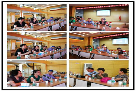 6月21日上午,北京第二外国语学院离退休工作处处长孙庆章带领20几位离退休支部书记到我校工作调研。