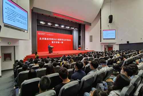 9月6日上午,北京服装学院2021级研究生开学典礼仪式结束后,460名新同学正式开启了在北服的研究生学习生活。迎接他们的开学第一课尤为特别,那是由校党委书记周志军带来的“更美好的生活与更好的自己”专题授课。