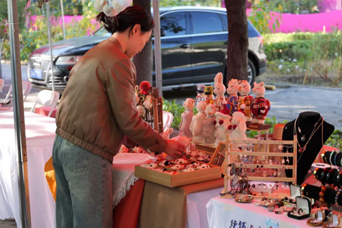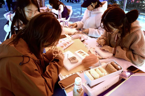 集市现场氛围热烈本届创意集市首次引入互动体验环节,聚焦漆扇、陶艺、羊毛毡、盘扣、中国结等传统工艺,通过互动实践,让学生深入了解、体验传统手工艺的独特魅力,引领学生感受技艺背后蕴含的中国文化思想内核。