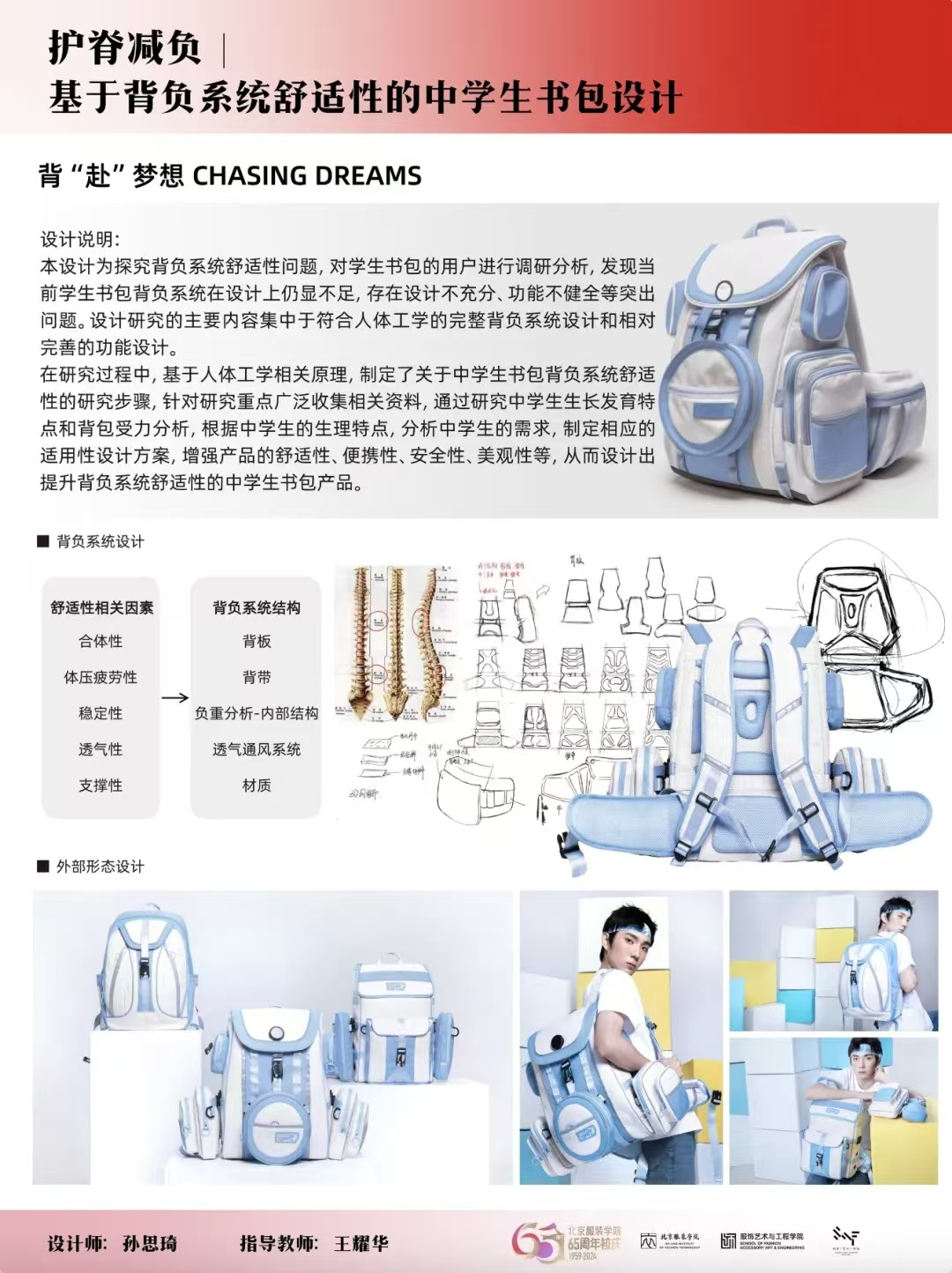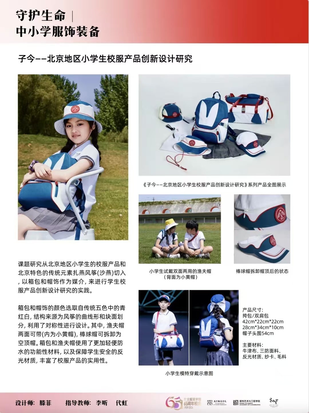 学院产品设计专业党员师生关注中小学服饰装备设计创新,加强新材料、新工艺、新版型和人体工学等方面研究,力求为中小学生群体提供更多集合功能性、美观性和文化性的服饰装备产品。