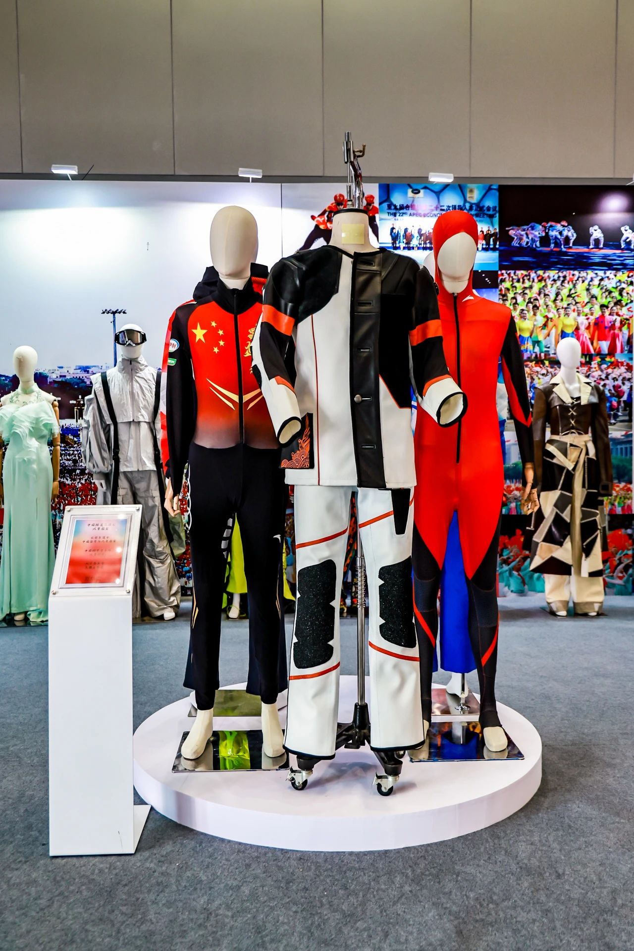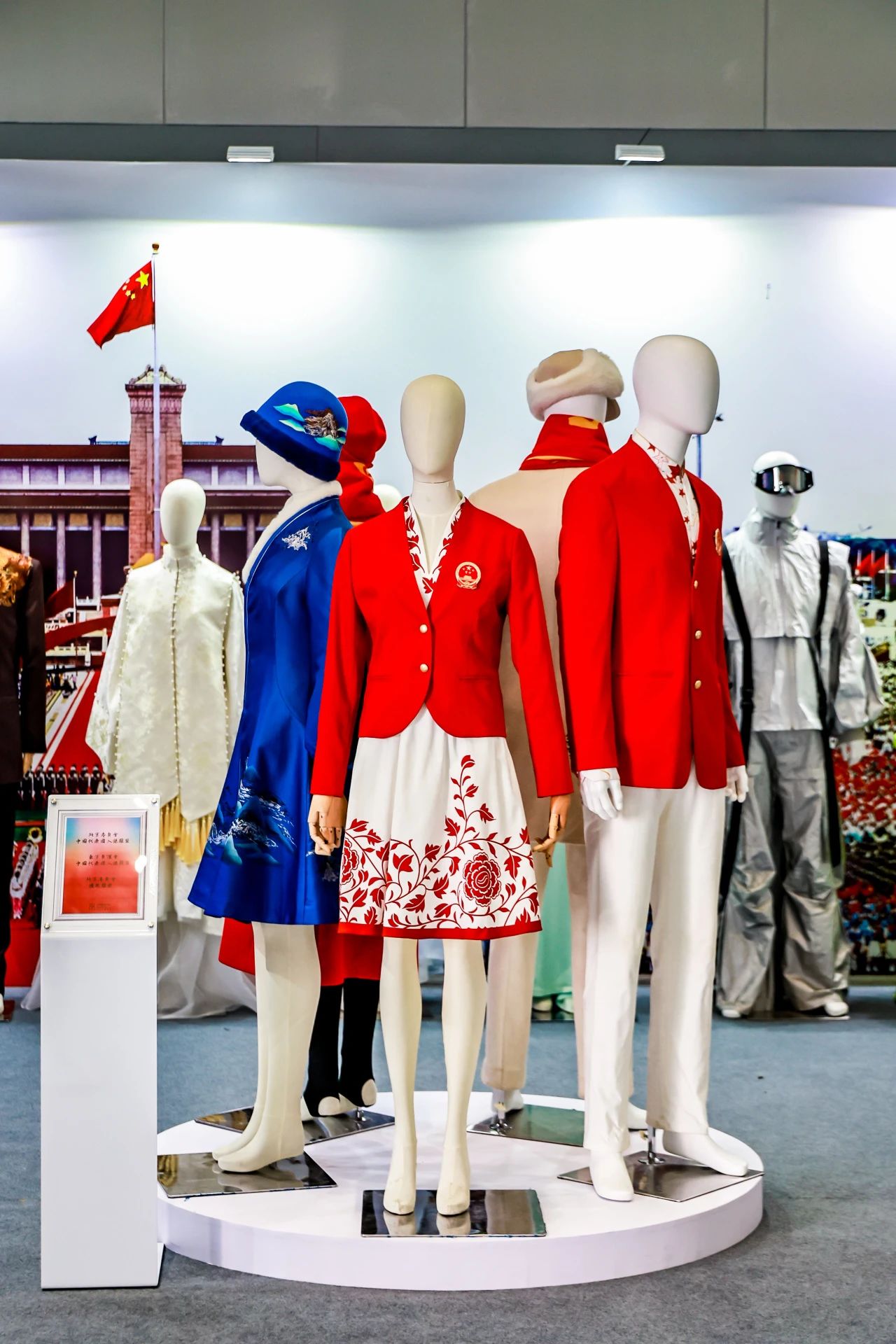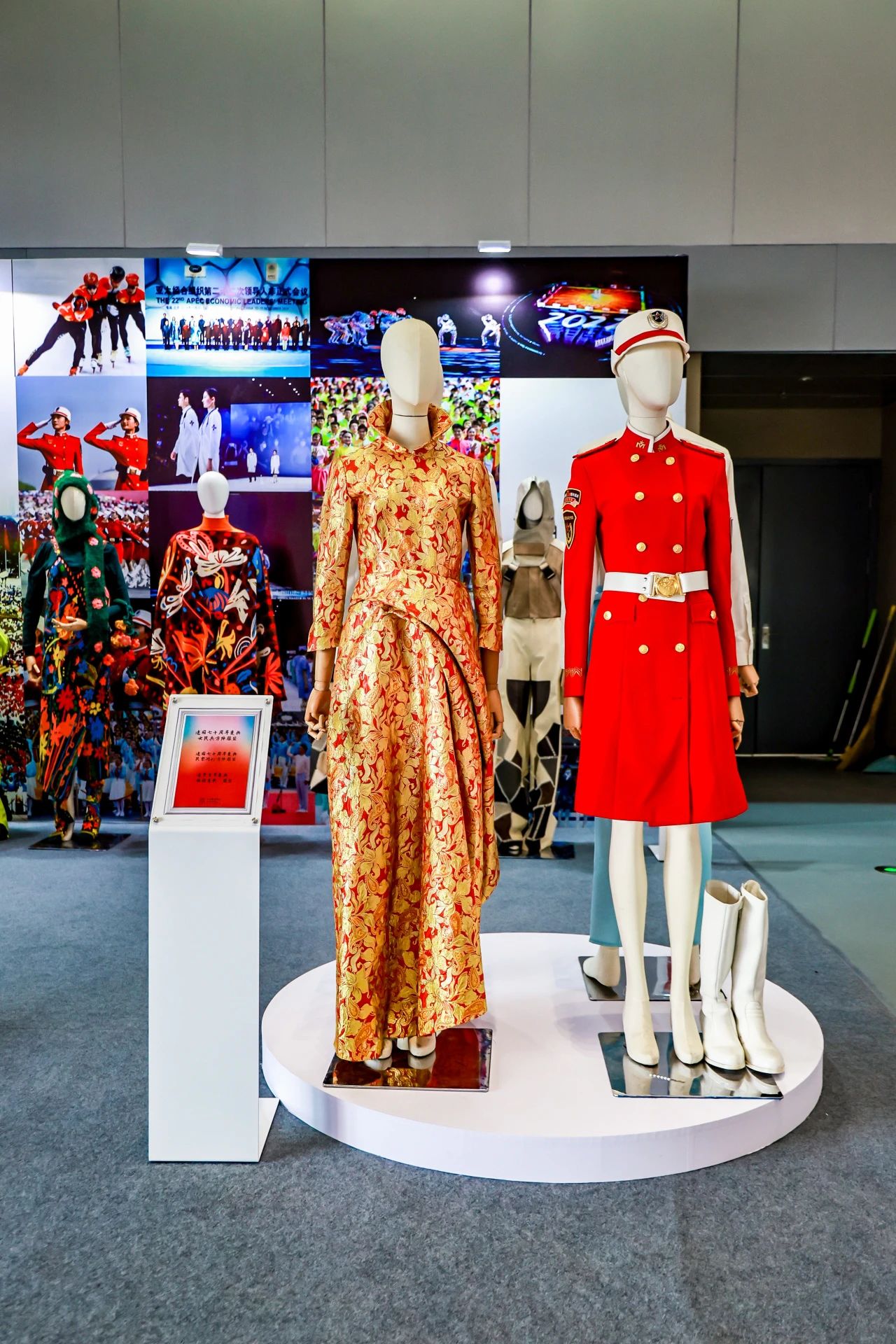 展览展出了庆祝中华人民共和国成立70周年群众游行及阅兵式服装,中国共产党成立100周年庆祝大会服装,2020东京奥运会中国体育代表团设计入场礼仪服装,2022年北京冬奥会和冬残奥会工作人员、技术官员、志愿者制服装备,2022年北京冬奥会和冬残奥会中国短道速滑队比赛服、中国钢架雪车队比赛服等服务国家重大项目服装设计。设计作品既有对传统文化的传承创新,也有科技与艺术相结合的突破,充分体现了学院创新实力和育人水平。